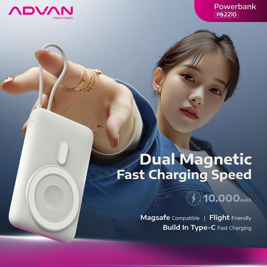 ADVAN menghadirkan powerbank terbaru dengan upgrade fitur wireless charging. Powerbank PB2210 hadir untuk memudahkan pengguna yang khawatir akan kehabisan daya baterai perangkat. Powerbank PB2210 memiliki desain yang lebih ringkas dengan ukuran yang lebih kecil nyaman dibawa kemanapun dan kapanpun. Serta fitur wireless charging yang dapat memudahkan pengguna dalam penggunaannya.