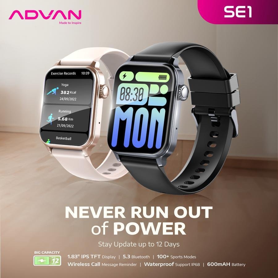 ADVAN menghadirkan smartwatch terbaru dengan desain yang modern, stylish, dan compact. ADVAN SMARTWATCH SE1,  smartwatch ini dapat menemani aktifitas pengguna sehari-hari. Cocok digunakan untuk kamu yang ingin terlihat menarik dan membutuhkan fleksibilitas tinggi serta performa yang maksimal.