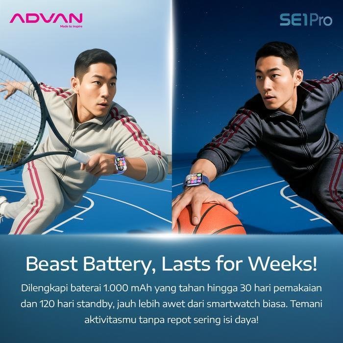 Smartwatch Advan SE1 Pro Smartwatch hadir sebagai perangkat wearable modern yang menggabungkan desain elegan dengan teknologi canggih untuk mendukung gaya hidup sehat. Dilengkapi layar IPS 2.01 inci beresolusi tinggi, baterai besar 1000mAh dengan daya tahan hingga 30 hari, serta fitur AI Watch Face untuk personalisasi tampilan, perangkat ini menawarkan kenyamanan penggunaan jangka panjang. Dengan sertifikasi IP68, lebih dari 100 mode olahraga, dan fitur pemantauan kesehatan lengkap seperti detak jantung, SpO₂, serta kualitas tidur, smartwatch ini menjadi pilihan praktis untuk aktivitas harian dan kebugaran.