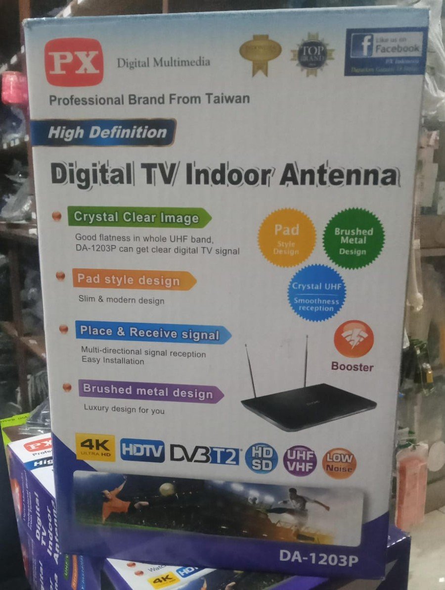 antenna indoor PX DA-1201NP didesain untuk menerima siaran terestrial digital. antenna ini dibuat untuk penggunaan di dalam ruangan dengan penerimaan sinyal yang baik dan sensitif sehingga dapat menghasilkan siaran digital yang baik dan berkualitas di TV anda,hal ini juga didukung dengan adanya LTE Filter dari PX untuk memotong/menghalangi sinyal LTE yang ada agar tidak ada gangguan untuk menerima sinyal sehingga penerimaan sinyal lebih jernih. Dengan desain baru yang khusus dan bergaya menarik.antenna ini juga mudah untuk dipasang dan mudah untuk diarahkan. dengan desain warna hitam yang elegan Sangat cocok untuk pelengkap TV/STB anda di rumah.