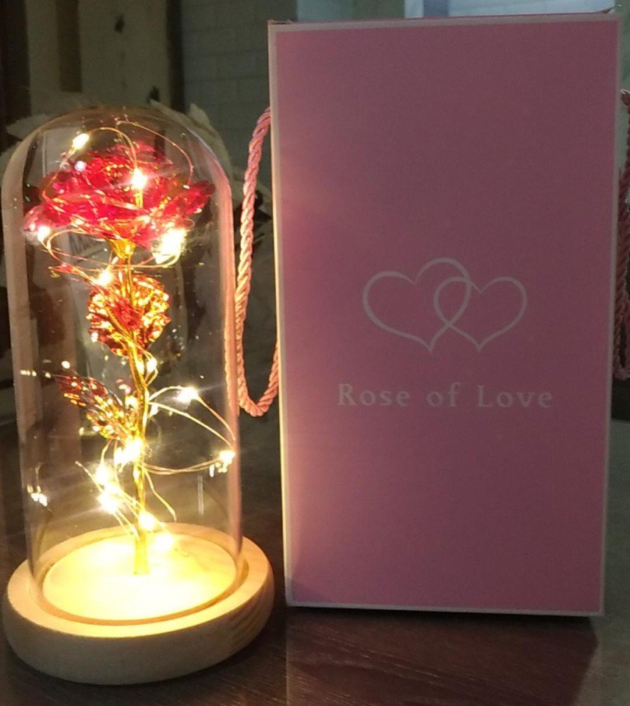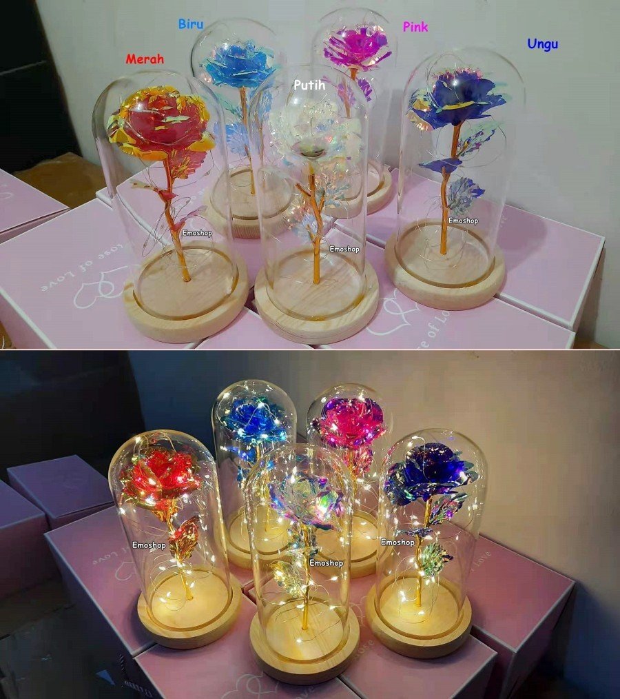 Bunga Mawar KACA AKRILIK lampu LED MENYALA kado valentine,wisuda,ultah