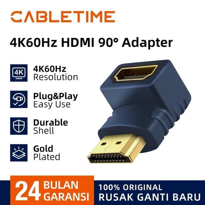 CABLETIME Adapter HDMI Male to Female Display HDMI Coupler – 90 degree – CP44G RIGHT