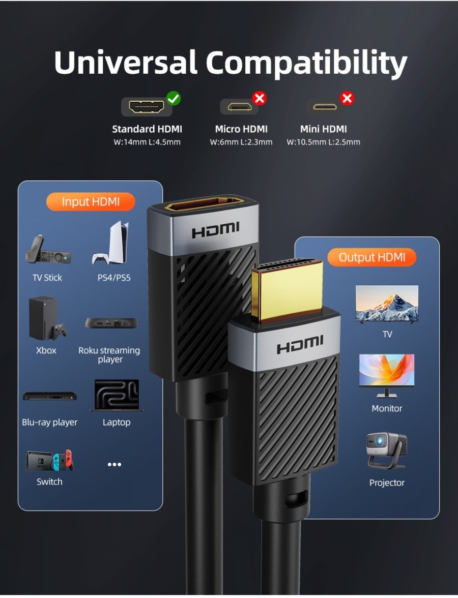 Input & Output : HDMI Male to Female v2.0