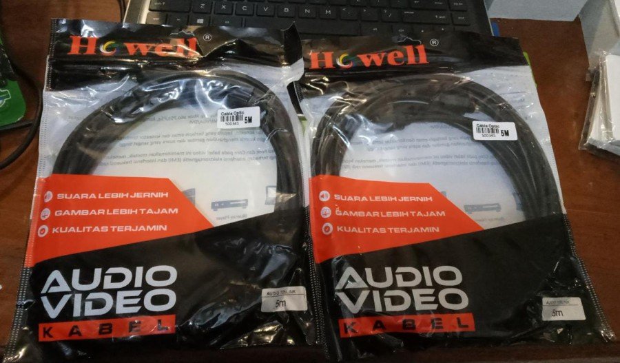 Howell Kabel Audio Fiber Optic / Toslink 5m – Optical Cable Di gunakan Untuk DVD,Home Theater,TV LCD/LED atau perangkat lainnya untuk terhubung ke sound sistem/Speaker yang sudah menggunakan port Audio digital Optic / toslink.