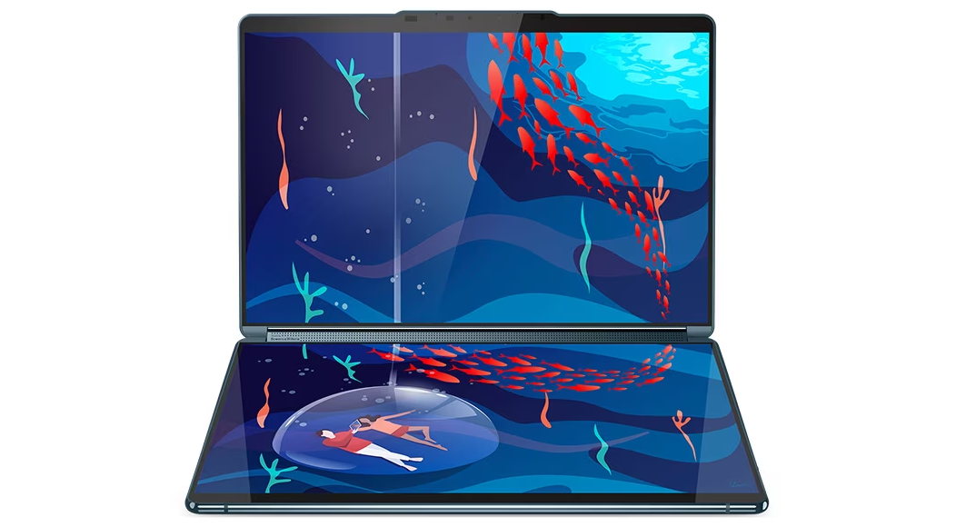 Lenovo Yoga Book 9i The world’s first full dual-screen OLED, multi-mode laptop. Two stunning 13.3″ PureSight OLED displays for versatile use. Powered by 13th Gen Intel® Core™ processors and the Intel® Evo™ platform. Detachable Bluetooth™ keyboard, stylus pen, & folio stand included. Carbon-neutral construction & eco-friendly packaging. Limitless possibilities & incredible entertainment with Dolby Atmos® & Bowers & Wilkins speakers