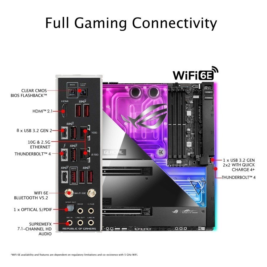 Motherboard Intel® Z690 EATX dengan power stage 24+1, EK® Ultrablock DDR5 terintegrasi dengan OptiMem III, Konektor panel depan Five M.2, USB 3.2 Gen 2×2 dengan Dukungan Quick Charge 4+, Dual Thunderbolt™ 4, PCIe® 5.0, Pencahayaan Wi-Fi 6E dan Aura Sync RGB onboard