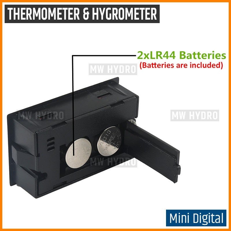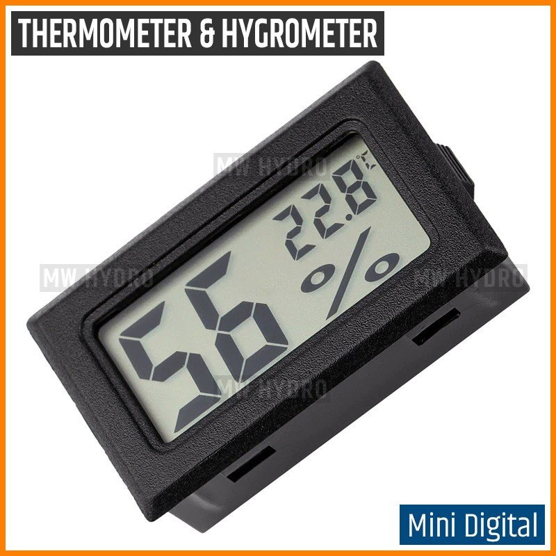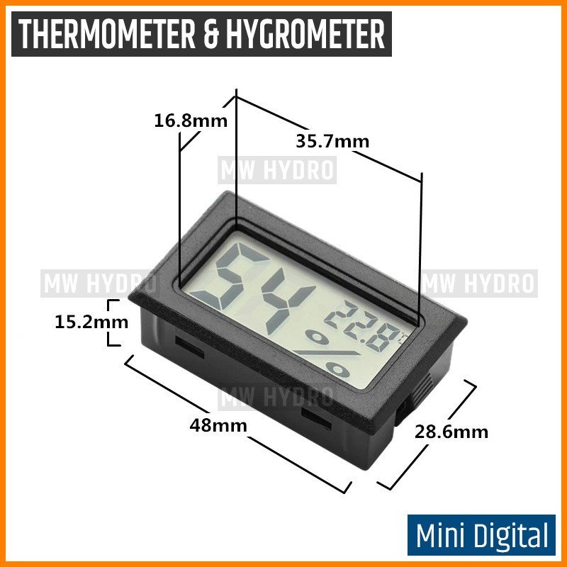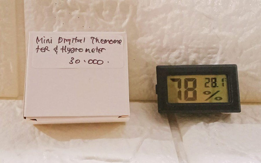 Termometer dan hygrometer digital mini digunakan untuk mengukur temperatur (C) dan kelembaban udara (% RH).