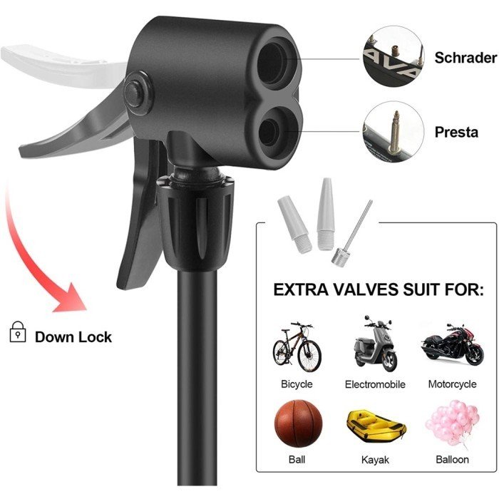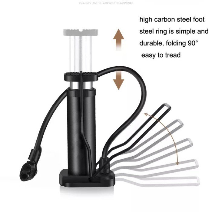 Pompa ban dengan desain yang mini portable sehingga mudah dibawa untuk berjaga-jaga ban kekurangan angin. Dengan sistem manual menggunakan kaki dan menginjak pada pedal yang ada. Membuat pompa ini dapat digunakan dimanapun dalam keadaan apapun karena tidak membutuhkan tenaga listrik atau baterai. Meskipun bentuk kecil namun dapat menghasilkan tekanan angin yang tinggi hingga dapat memompa bola atau balon. Memiliki katup kepala ganda, pentil dunlop (schrader valve) biasanya digunakan pada ban sepeda keluaran lama,mobil dan motor dan pentil presta (french valve) umumnya digunakan pada ban road bike atau MTB. Pompa ini dapat digunakan untuk segala jenis pentil/valve ban sepeda,motor,mobil,bola,pelampun,dll.