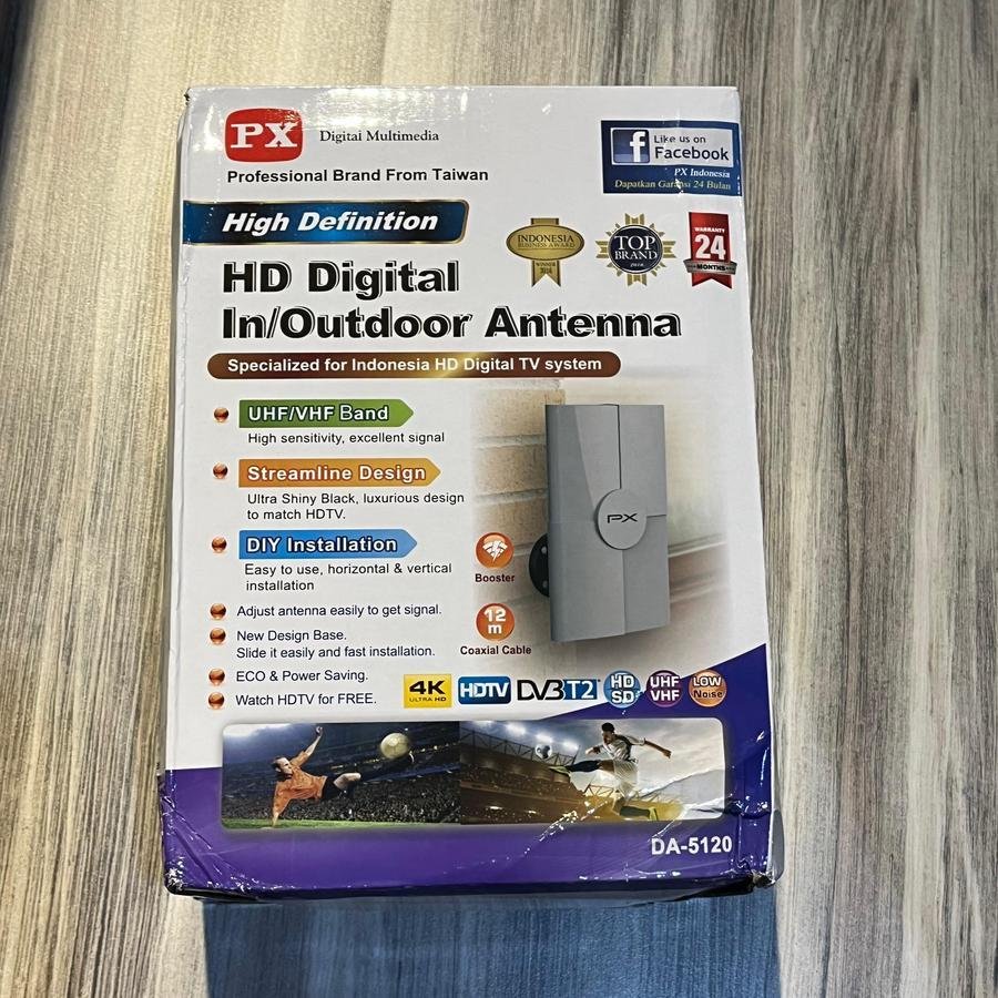 Memperkenalkan Digital Indoor Antenna DA-5120 dari PX yang dapat digunakan di dalam ruangan yang didesain special untuk sistem HD Digital TV di Indonesia. Dengan penerimaan sinyal yang baik dengan tingkat sensitifitas yang tinggi. Mudah dipasang baik secara horizontal maupun vertikal.
