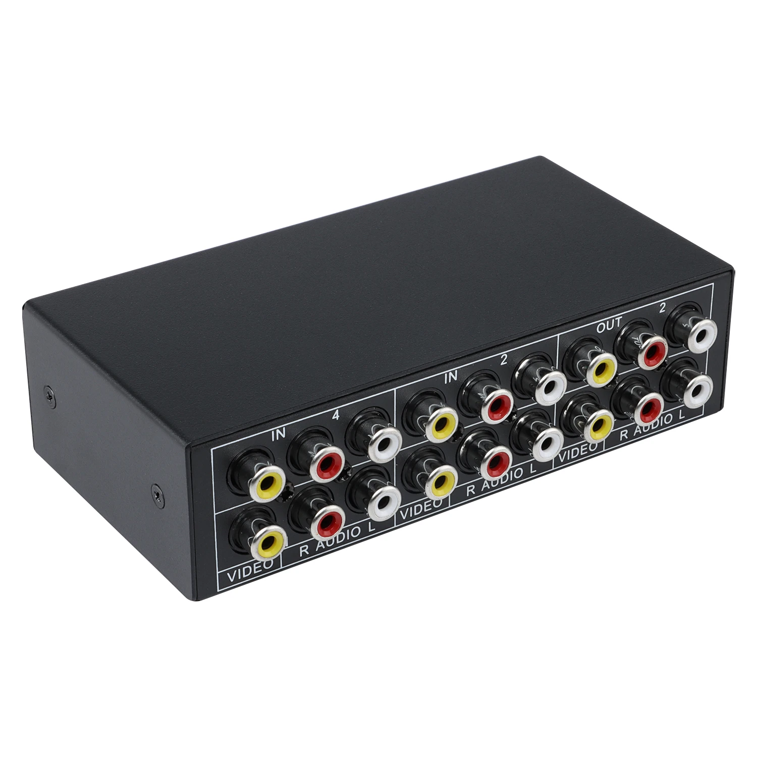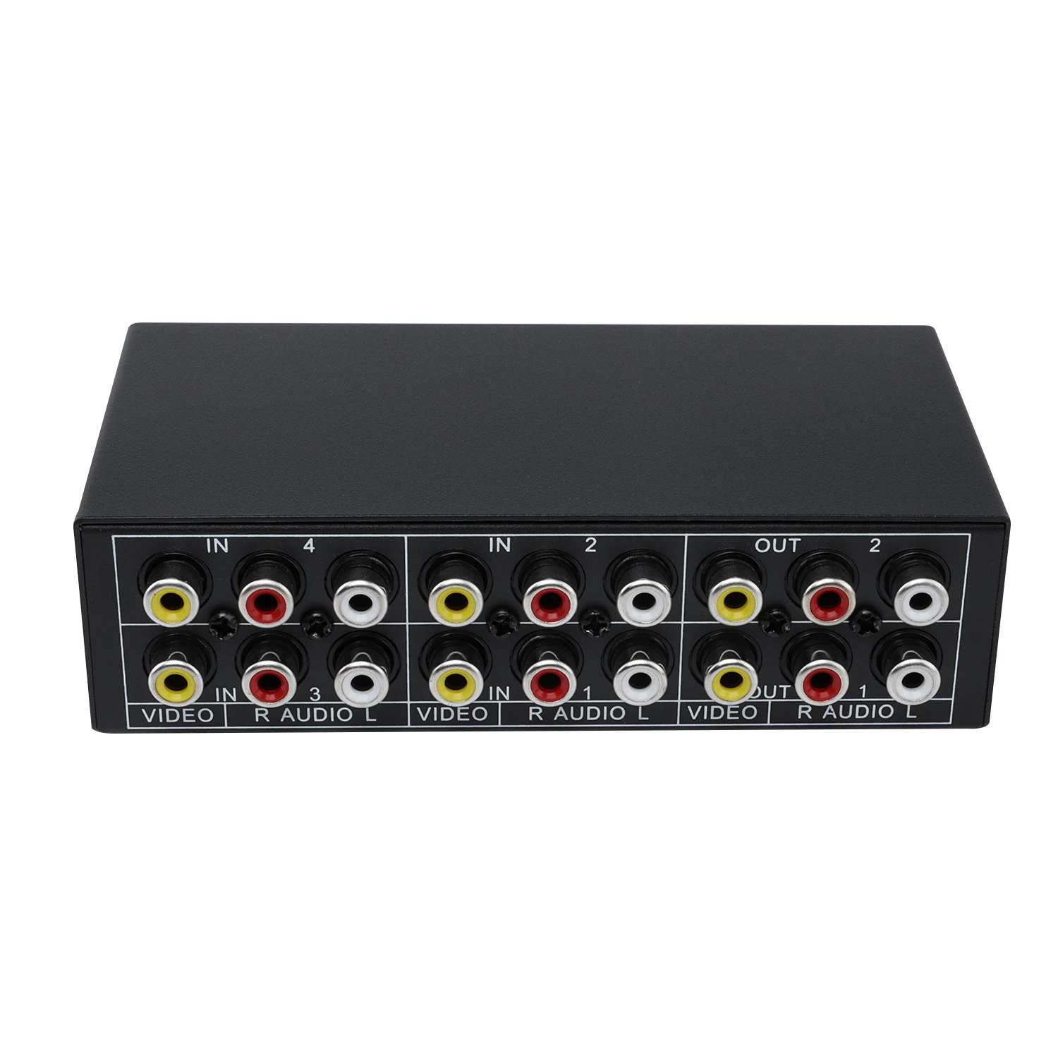 AV Selector VA-402 Audio Video Switcher merk USAT original4 input RCA dan 2 output RCA (kuning, merah & putih).