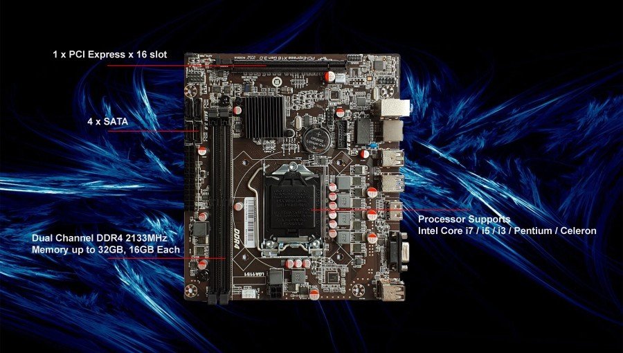Support for 7th/6th Generation Intel Core i7 processors/Intel Core i5 processors/Intel Core i3 processors/Intel Pentium processors/Intel Celeron processors in the LGA1151 packageSpesifikasi: